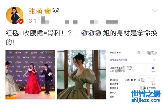 红毯上带笑营业,医院里含泪治疗,张萌拍下病历单调侃:姐的身材是拿命换的。只希望这次经验教训,会让她以后选礼服的时候更慎重点吧。