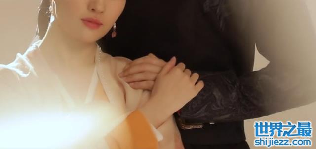 陈晓一只手在摆弄着刘亦菲的发簪,另一只手则是紧紧被刘亦菲握住,这样的甜蜜互动让人感觉屏幕中充满了粉红泡泡。