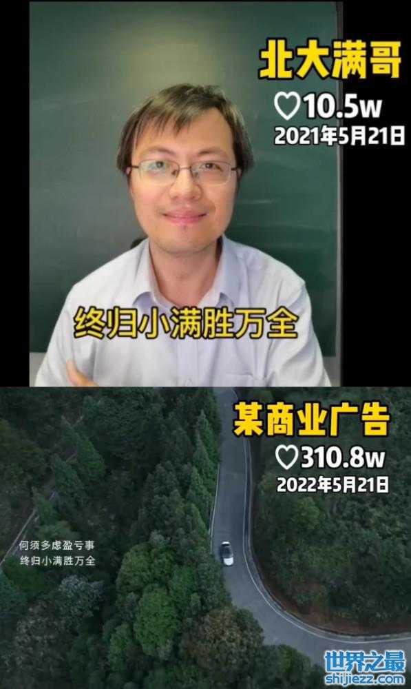 据悉,北大满哥的原创诗句和文案分别在2020年5月和2021年5月发布过,甚至在2018年就已发过,这也是北大满哥被指抄袭后无奈之下才发声维权 “我相信德高望重的刘先生肯定不会来我的短视频,一个字一个字扒我的文案,然后去发一个商业广告。所以最好谁去扒的,谁出来帮我做一个解释。”