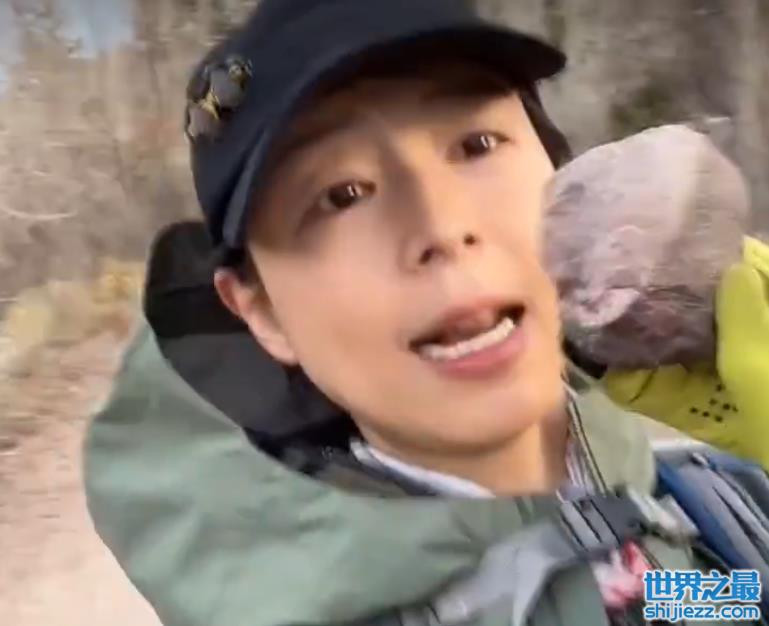 后来由于时间的关系,张静初不得不返程。回去的路上张静初还捡了两块漂亮的石头,是上下颜色不同的石头,张静初为我们讲述着它的独特,后来她表示没能登上雪山很遗憾,但还是要注意安全。