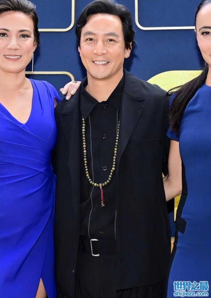 在合照中,吴彦祖眼角皱纹明显,面泛油光,脸颊非常红润,显得有些油腻。但好在他的颜值一直在线,这些特征反而让他更显成熟魅力。当天吴彦祖穿着一身西装,一串珠子项链垂至胸前,两种风格在他身上也不显违和。