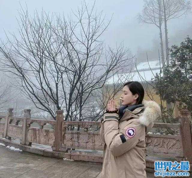 张颖颖去九华山祈福的照片晒出,大家关注的不是她照片的风景,而是她身上的这件卡其色羽绒服和汪小菲的是同款。