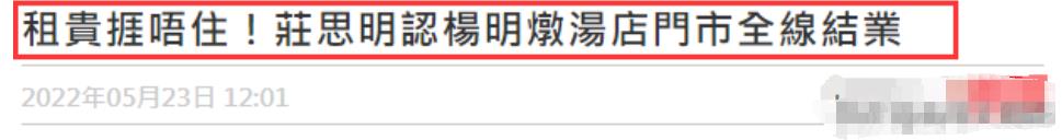 近日,有媒体曝料TVB小生杨明在香港开的7间炖汤店已经全部关闭,昂贵的铺租成为了最大的原因。