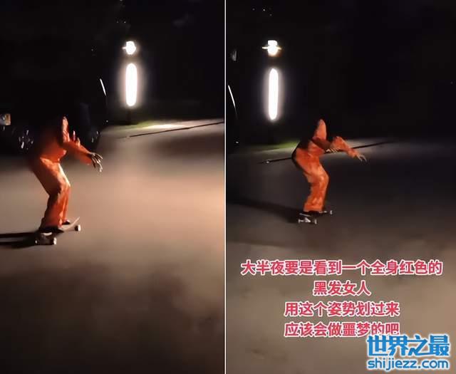 在老公的帮助和不断练习下,钟丽缇终于能够比较顺畅地滑行一段距离了。不过就像她自己的配的字那样,如果大半夜看到这么一个全身红色的黑发女人用这样的姿势滑过来,应该会做噩梦吧,而且钟丽缇也十分应景的在这一段加上了鬼片的音效。