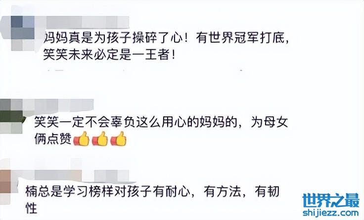 看到这一幕,评论区中网友们纷纷表示妈妈操碎了心,有世界冠军的妈妈做榜样与教练,笑笑一定不会差。还有网友表示王楠在教育上非常有耐心有韧劲,还有好方法,笑笑一定不会辜负妈妈。而王楠丈夫在记录这一幕时也发出感慨,“长大以后,一定会记住这一刻,为了脚步的合理,妈妈很伟大”,字里行间都是对王楠的感激与对笑笑的期盼。