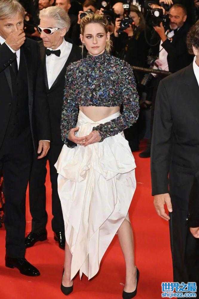 不过,对比斯图尔特以前那些“奇装异服”,今年的戛纳造型,已经很不错了。想当年,她穿着银色铠甲战袍,走着走着红毯,就把鞋给脱了。因为高跟鞋穿着不舒服,干脆打赤脚。