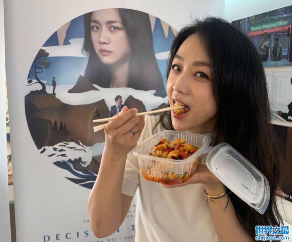 另外汤唯还在戛纳晒出了自己吃到的宫保鸡丁。