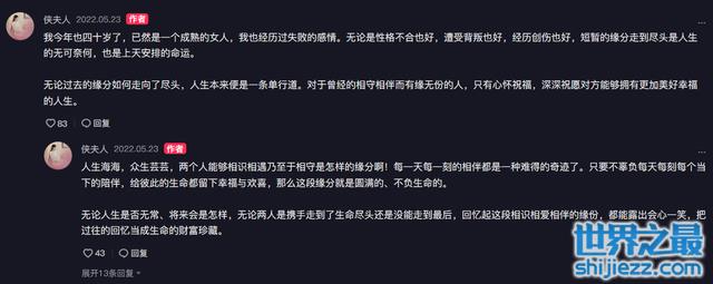 在发完这则视频后,杜星霖还在评论区中发了许多文字来诉说她和张纪中的这段感情。她说与张纪中能够相互相遇乃至相守是怎样的缘分,不管是否携手走到生命的尽头还是没能走到最后,回忆起这段缘分的时候希望还是能够会心一笑。