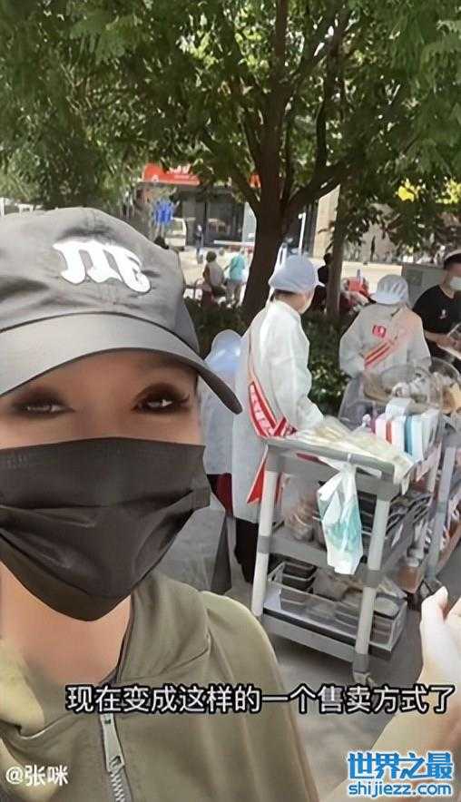 近日,张咪在社交平台上晒出一段在楼下买食物的视频,视频中的她戴着口罩、鸭舌帽,画着精致的眼妆,向大家展示楼下餐厅响应疫情期间不聚集的政策,采取分装零售的方式向居民们提供食物,方便又安全。