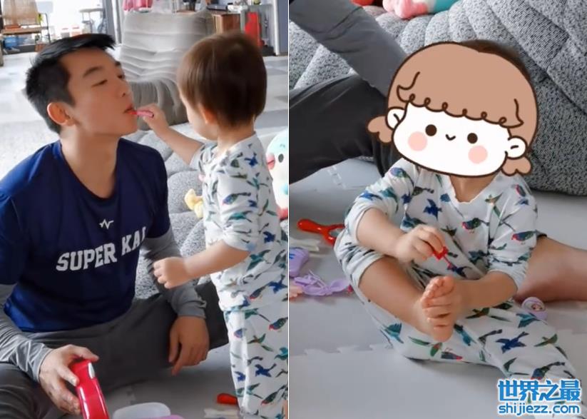 父女两人一会儿涂涂口红,一会儿涂涂指甲油。虽然都是小朋友的玩具,但郑恺似乎也玩得特别高兴。