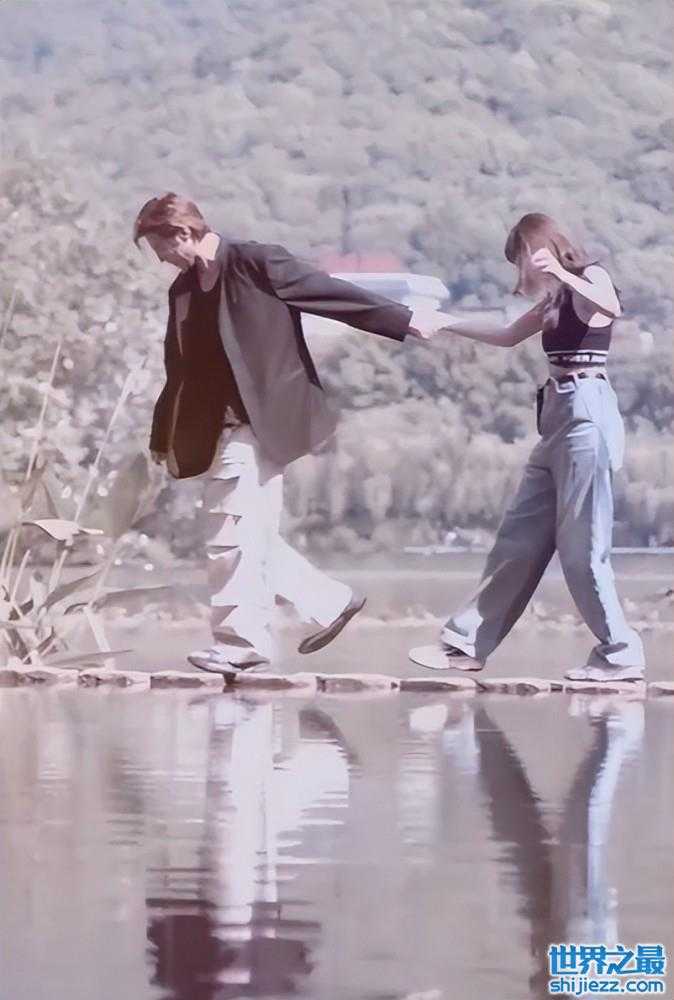 之后,姜潮与麦迪娜走在河流的石阶上,姜潮走在前面,一只手牵着麦迪娜。而两人身后的背景是成片的山林,郁郁葱葱的树林与秀丽的小溪,风景优美非常宁静,而半山腰处有一间屋子,充满了惬意悠闲之感。