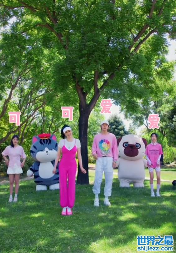 伴随着可爱的背景音乐,钟丽缇一家人也很是活泼灵动。两个女儿扎着马尾穿着短裙短裤非常青春有活力,钟丽缇的老公张伦硕穿上粉色衣服也很是活泼,尤其是加上灵动的舞蹈姿势,作为视频中唯一的男性很是吸引人。