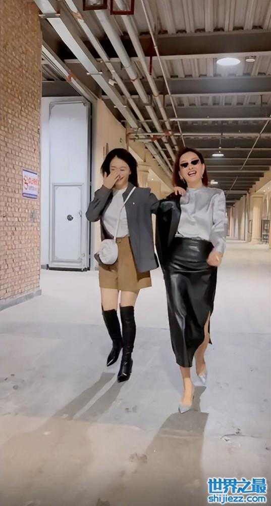 在与朋友相处时,牛莉也是非常放得开。画面中牛莉戴着墨镜,穿着真丝上衣和皮裙,侧面露出的大腿很是性感,脚上一双银色高跟鞋亮眼十足,与当天这身衣服非常搭配。一旁的朋友捂着嘴笑,而牛莉面对镜头丝毫不怯场,反而气场全开。