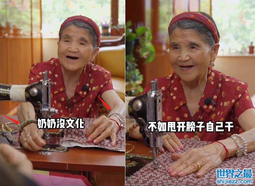 刘丽芹穿着朴素清澈,虽然脸上满是皱纹,但整个人显得很精神。与穿着不同的是,刘丽芹一手带着玉镯和手串,另一只手上带着手表和珠宝手链。两只手上的金戒指和宝石戒指也格外抢镜,虽然颜色大多不张扬,但都体现出了她的贵气。