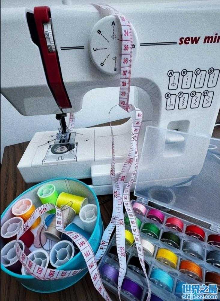 上面是黄多多制作的工具,一台比较小巧的家庭缝纫机,黄多多还放出自己在制作时候的一些细节,有各种各样的线,还有一个小小的量尺,看来她是真的很享受这一种创作的魅力。