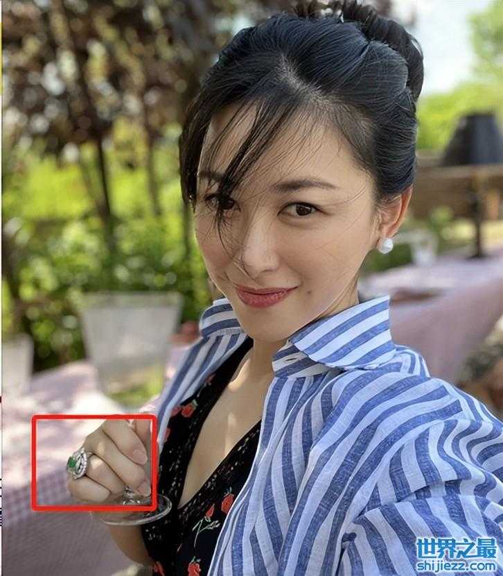 随后朱珠晒出一张自拍,她穿着老公的蓝色条纹衬衫,手指上鸽子蛋大的绿宝石十分吸睛,显得很是贵气。