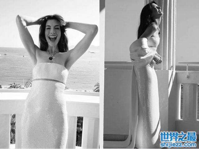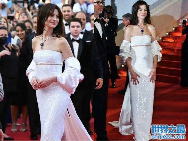 还有pick白色抹胸礼服裙的安妮·海瑟薇。