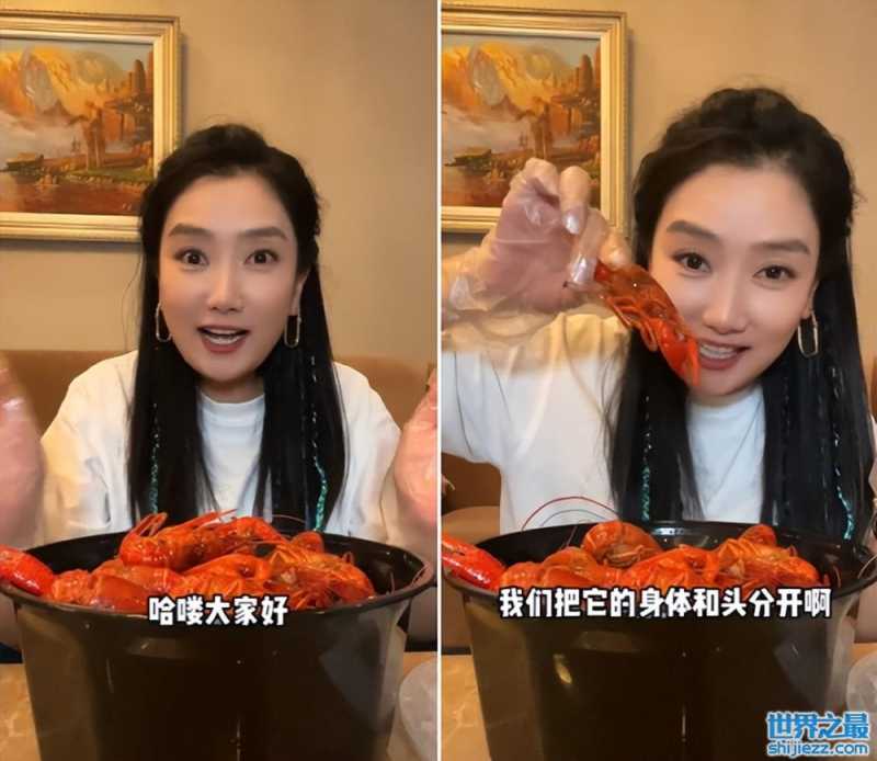 玲花吃小龙虾太激动!吃太快手被虾壳扎破,衣服上沾满油点不在意 ...