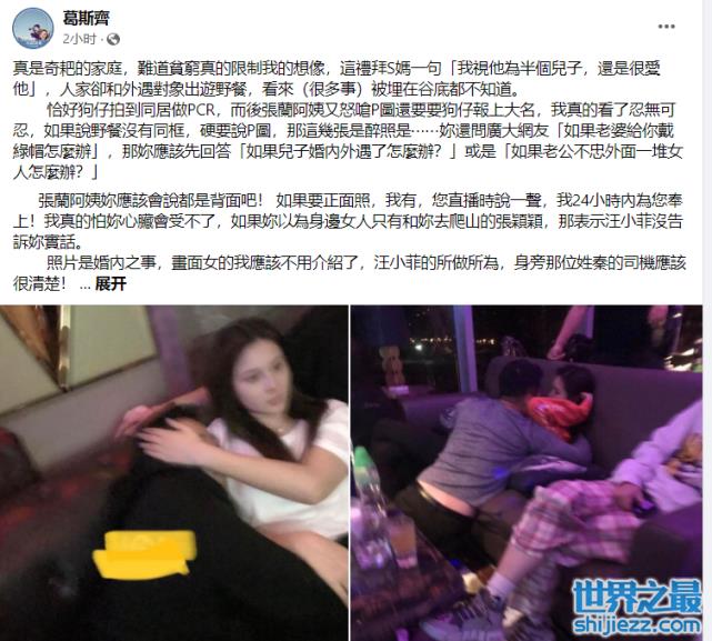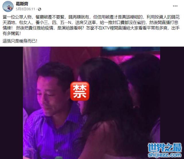 早在5月8日,葛记者也曾经发文爆料汪小菲,还晒出了汪小菲在娱乐场所被几位美女环绕的照片,并嘲讽汪小菲出手阔气,当时的葛记者就表示日后还会放出其他照片证据。