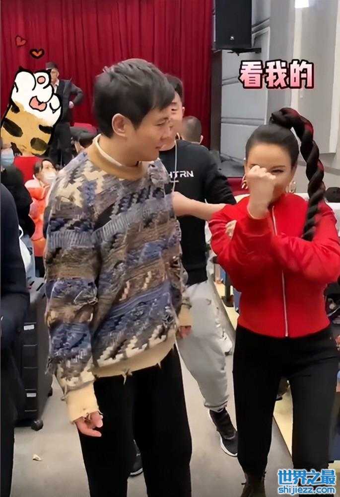 除此之外,李玟还会在节目后台与沈腾一起拍摄短视频,只见视频中的李玟模仿沈腾电影中的经典动作,举起拳头表情狰狞,一条腿还向后退,模仿的十分形象。