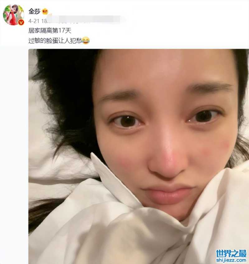 素颜穿着睡衣出镜的金莎,整个人的状态看起来并不算差,精神状态也很正常,脸上的气色或许是因为没有化妆的关系,让金莎看起来多少有些地显得苍白,但从她的表达来看,她现在并不是特别严重。