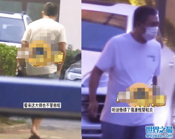 另一张图片中张嘉益在工作人员的陪同下,慢步走向核酸点。图中看出他不自觉弯下肩膀和腰椎,整个身体微微向前弯更令肚腩格外显眼。