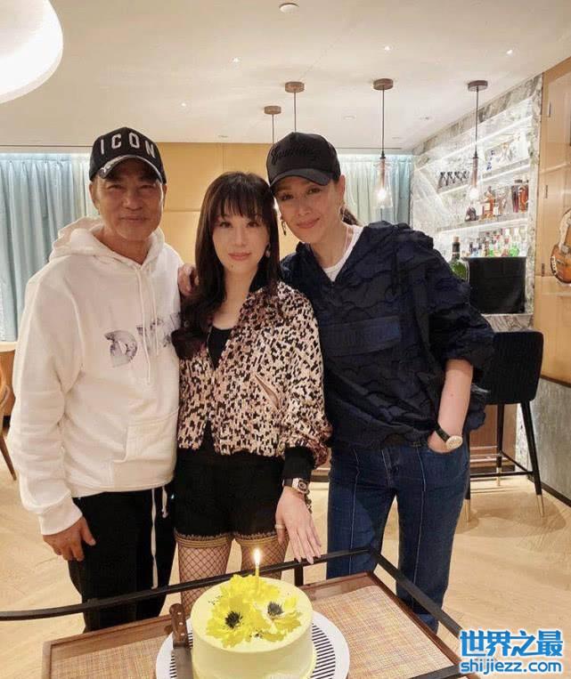 在杨小娟生日时,任达华和琦琦夫妻俩到场为其庆生,和她一起切蛋糕。