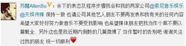 19年末,苏醒发文时意有所指,说自己将进入一段新旅程,应该对自己负责的人安排明白,照顾周全。