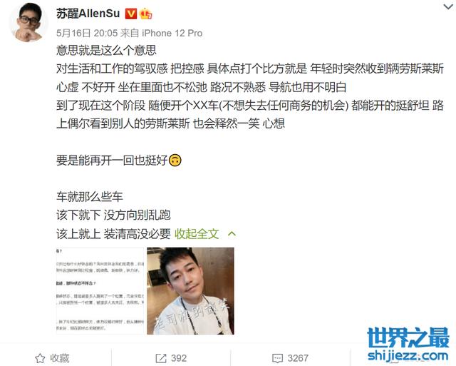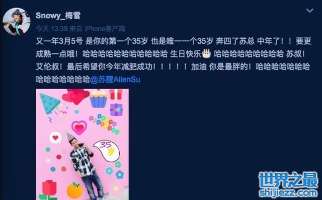 但最最最锤的,还是苏醒本人在传说中的“出生日”那天发的微博: