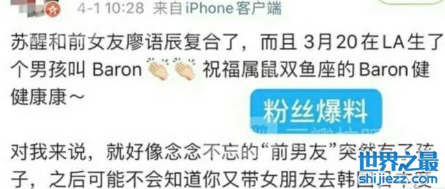 2020年愚人节,突然有粉丝自称是瓜主,说苏醒跟女友在海外生了个孩子叫Baron。