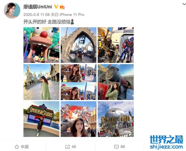 2020年初,廖语辰晒了居家照,能看出来窗外的风景不是国内;