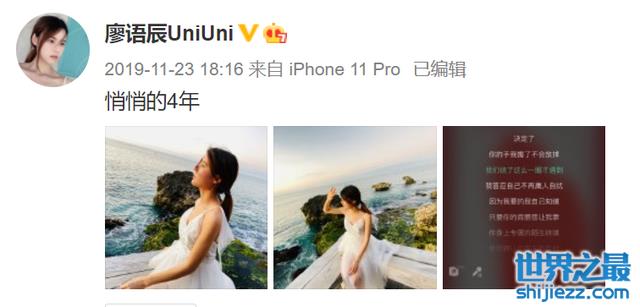 确实,女方后来发过一条动态纪念“悄悄的4年”,图三是满怀恋爱泡泡的歌词。