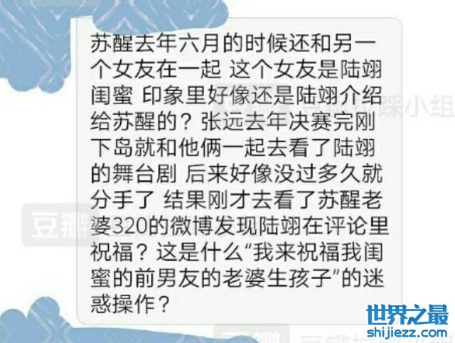 爆料里说她是陆翊的闺蜜,苏醒也确实跟梅雪探班过陆的音乐剧没错。