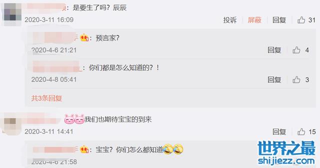 评论区的粉丝们似乎也都掌握了情报:我们也期待宝宝的到来。