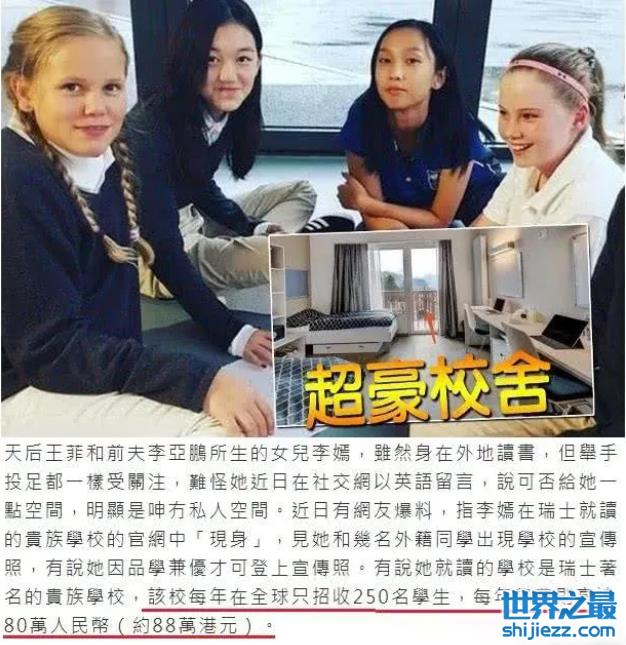 据悉,李嫣如今是在瑞士留学,是瑞士有名的贵族学校,每年学费高达80万人民币,且每年仅在全球招收250名学生,学校配置豪华,李嫣住的宿舍也是十分宽敞豪华的。