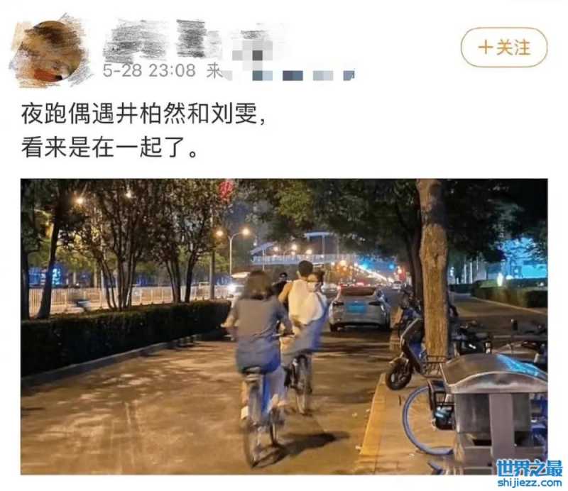 近日,有网友在社交平台发帖称夜跑疑似偶遇井柏然和刘雯同骑单车,照片中疑似刘雯穿着牛仔背带裤,扎着丸子头坐在井柏然的自行车后座,身形苗条十分抢镜。两人被传恋情疑似曝光,照片传出后让网友们始料不及,瞬间引起了大家的热议。