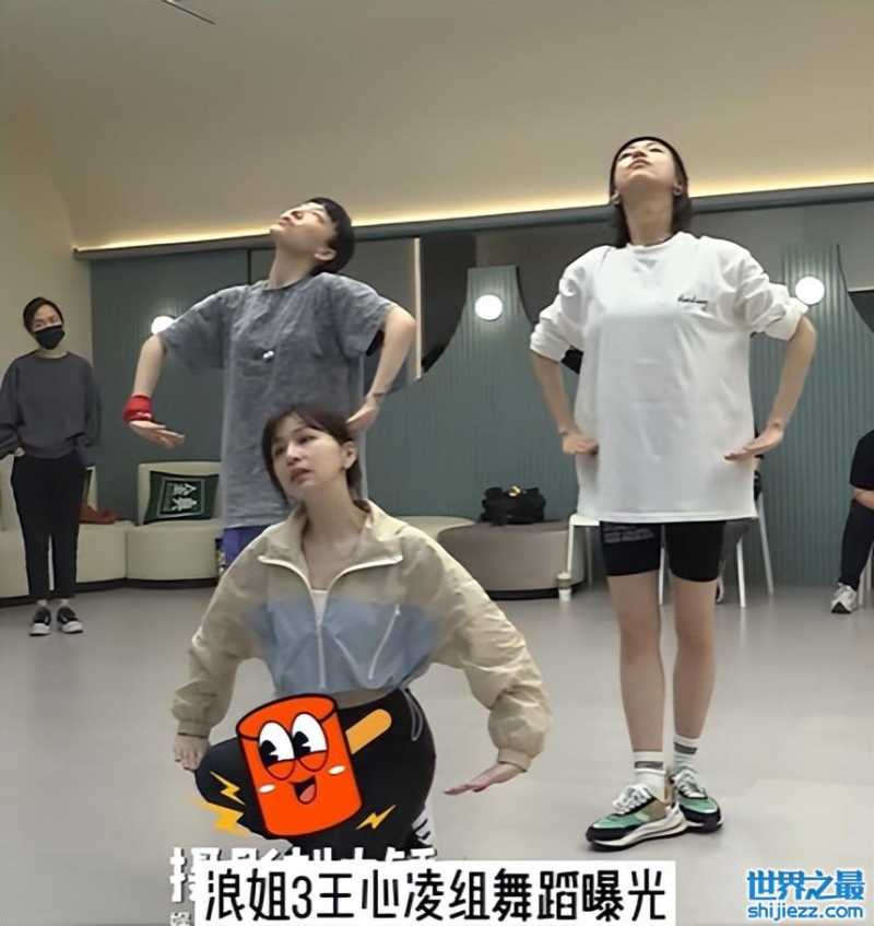 接着,王心凌站起身,抬手便露出纤细的腰部,我们从图片中可以看到王心凌腰腹部无一丝赘肉,非常平坦令人羡慕。三人做着相同的手势分别朝向不同方向,大家表情严肃,练习起来相当认真。
