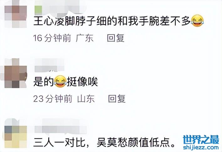 网友们在评论区讨论热烈,有网友表示王心凌脚脖子和自己手腕一样细,也有网友探讨三人的动作确实很像火影忍者,还有网友评论三人对比吴莫愁较为逊色,但其实三人风格各异,各有不同的美丽。