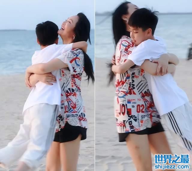 曹颖带儿子海边嗨玩!穿超短裤腿上疤痕明显,11岁儿子身高太抢镜 ...