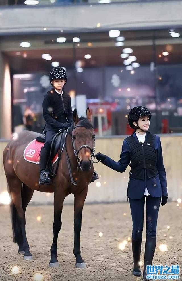 在空闲时,曹颖会带儿子去尝试很多有意义的活动。画面中的曹颖带着儿子去骑马,母子二人身穿骑士服,紧身的裤子将曹颖修长的腿勾勒得淋漓尽致,她脸上带着微笑单手牵着马,像一个骑士守护在儿子身边。曹颖儿子坐在马上,腰板挺直酷酷地看向四周,如王子般优雅端庄。