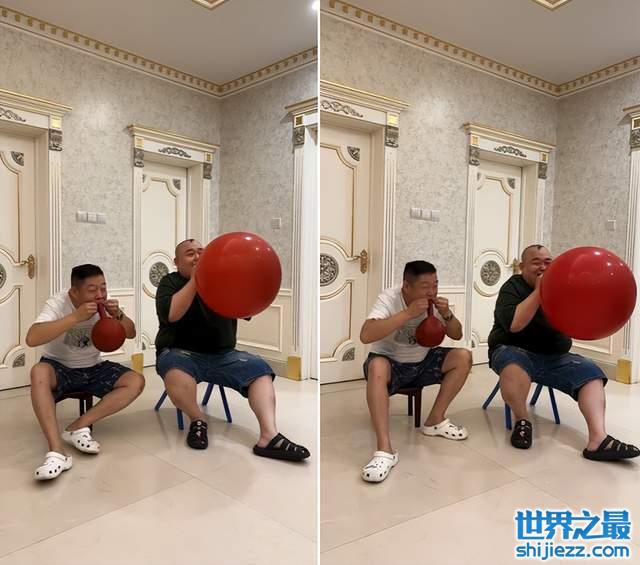 当然,过节也并不是只有在开小灶,从郭德纲老婆发出的视频可以看见,郭德纲的徒弟们在课后还在家里玩起了游戏。两个徒弟一人吹着一个巨大的气球,似乎是在看谁能更快把气球给吹破,两人奋力的样子也是逗得拍视频的王惠哈哈大笑