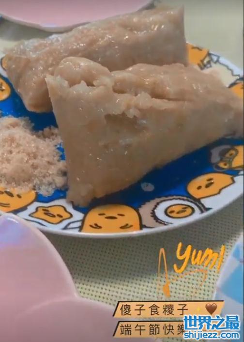 两个不同的盘子,摆着端午节的粽子,估计郭嘉文当下的生活是相当的享受吧。尤其是与男友李泽楷过着深入浅出的日子,十足的甜蜜幸福。
