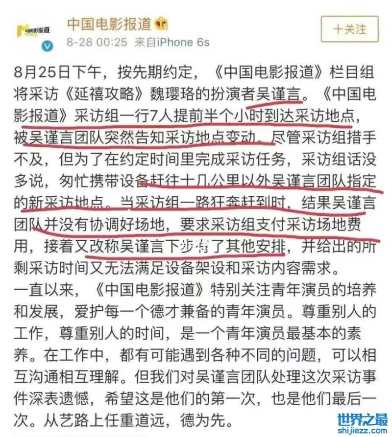 自从凭借《延禧攻略》魏璎珞走红后,吴谨言就成了一个“香饽饽”,很多媒体争相采访她,央视也不例外。可是,在一次采访中,吴谨言团队先是说需要换地点,接着又改成下步有了其他安排,直接爽约不来了。