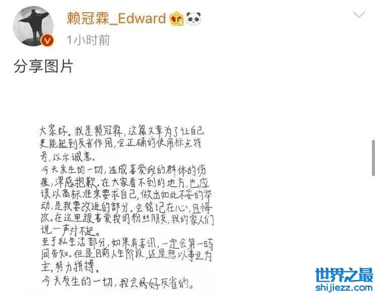这件事情被曝光后,赖冠霖受到了网友的批评,他本人手写道歉信,称会好好反省。唉,早知如此,何必当初呢?