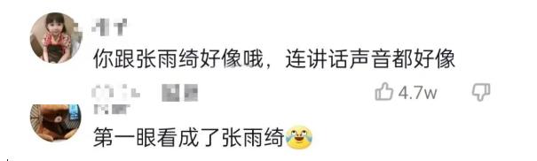于是,一大批网友都纷纷留言,“好像张雨绮,长相声音都像”,“第一眼看成了张雨绮”。
