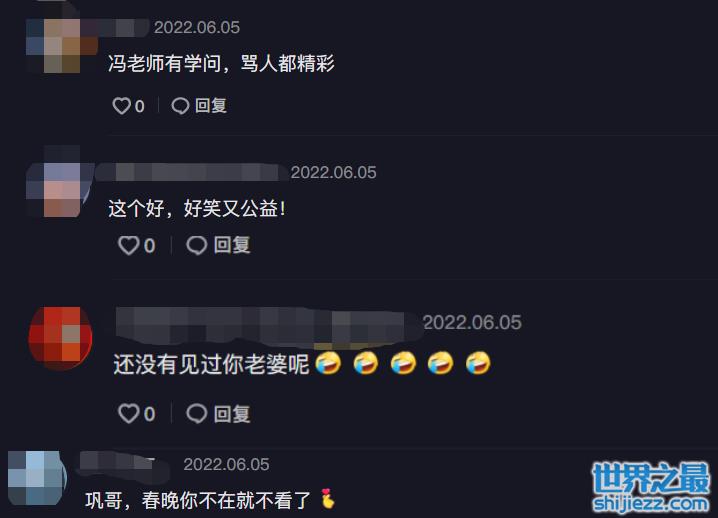 看到这段视频之后,许多网友都在评论区留言。有网友关注点在冯巩的老婆身上,称大家都没有见过他的老婆。也有网友称冯巩有学问,骂人都精彩。更有网友表示没有冯巩的春晚自己都不看,言语间满满都是对冯巩的肯定。