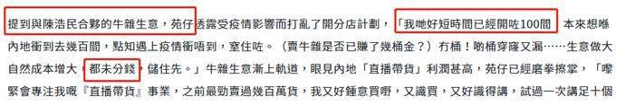 苑琼丹还称之前投资牛杂店并未分钱,直到如今牛杂店渐入正轨,生意做得越来越不错,她表示自己对直播带货也颇感兴趣。