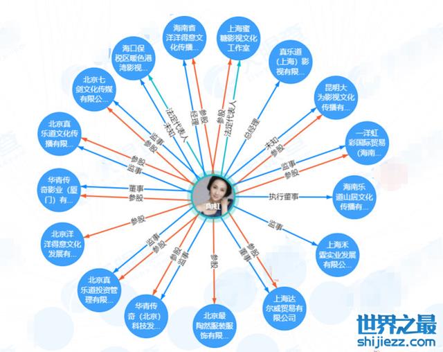 不过,她投资的公司很多,名下就有16家公司,其商业版图甚广,在贸易、影视、服装、传媒等领域均有涉猎。