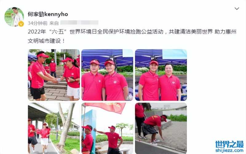 近日,演员何家劲在个人社交平台晒出一组参加保护环境捡跑公益活动的照片,并配文称“共建清洁美丽世界,助力惠州文明城市建设”,引起网友热议。