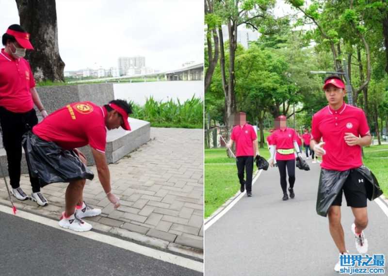 等真正开始捡跑公益行动时,何家劲不同于他人手拿垃圾袋,他直接将垃圾袋紧捆在自己腰上,方便低头捡垃圾时快速放入。由于天气炎热他已是满头大汗,但仍尽心尽职忙碌着、奉献着。街边一根小烟头,何家劲看见也立刻弯腰捡起。